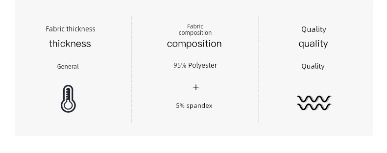 Material composition: Polyethylene terephthalate (polyester) 95% polyurethane elastic fiber (spandex) 5%
